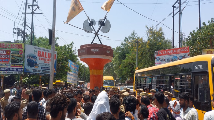 आगरा के परशुराम चौक पर अराजक तत्वों की हरकत से ब्राह्मण समाज में भारी आक्रोश फैल गया, जिसके चलते तीन घंटे तक प्रदर्शन हुआ। पुलिस ने 48 घंटे में आरोपियों की गिरफ्तारी और सख्त कार्रवाई का आश्वासन दिया, जिसके बाद धरना समाप्त हुआ।