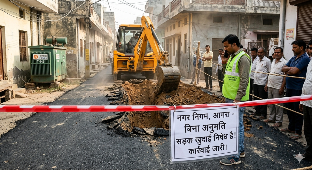 - बिना अनुमति खुदाई: नगर निगम के नियमों के अनुसार, किसी भी सड़क की खुदाई के लिए ‘रोड कटिंग’ की अनुमति लेना अनिवार्य है। टोरेंट पावर ने गोकुलपुरा (लोहामंडी जोन) में बिना किसी पूर्व सूचना या अनुमति के नई सड़क खोद दी थी।